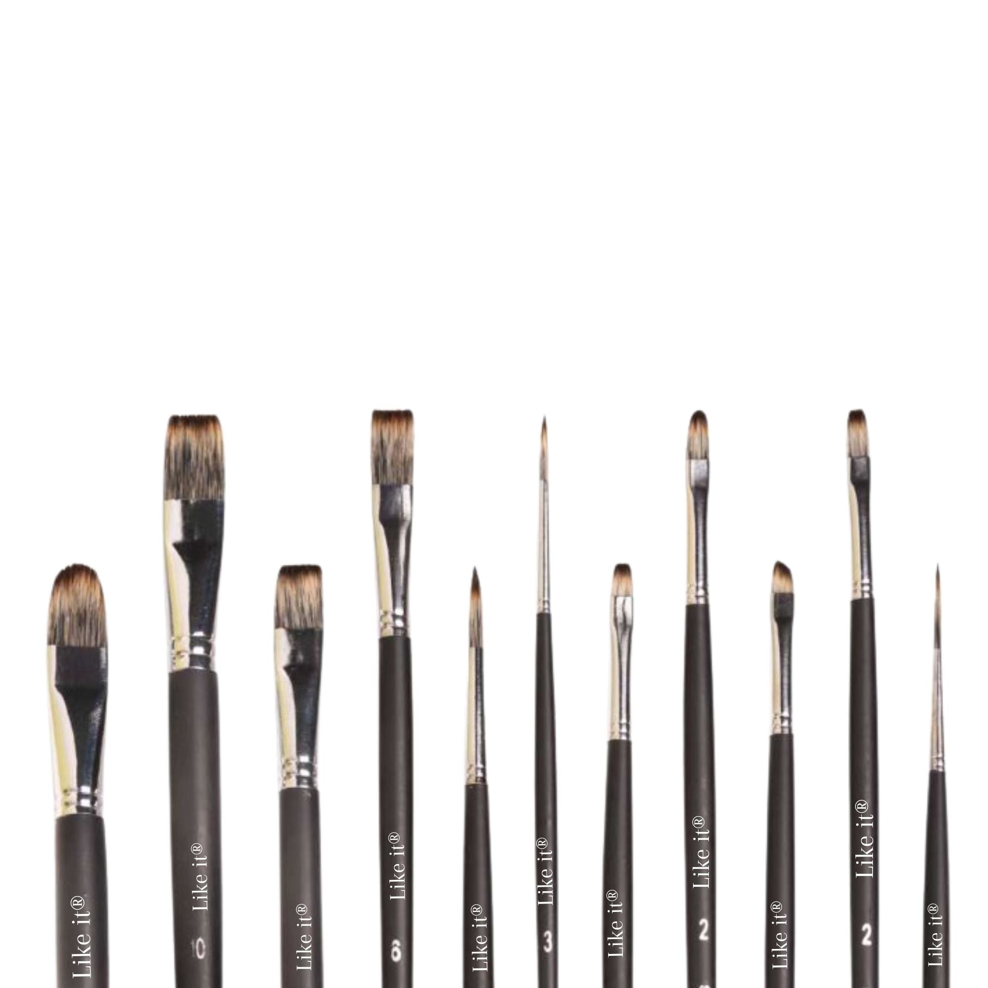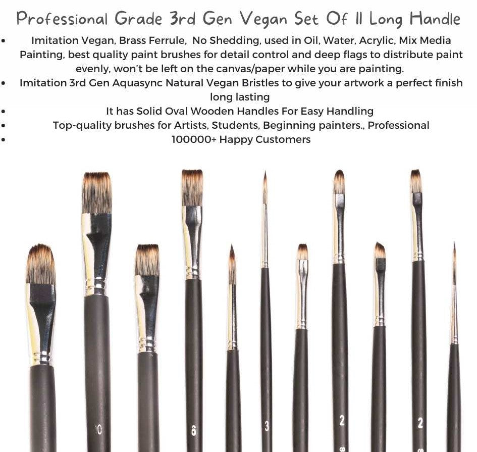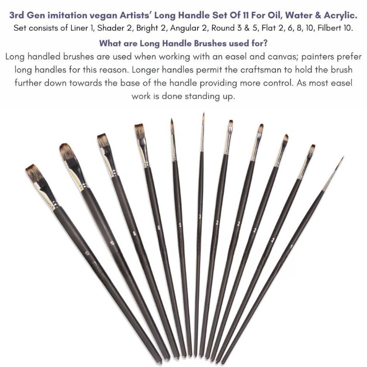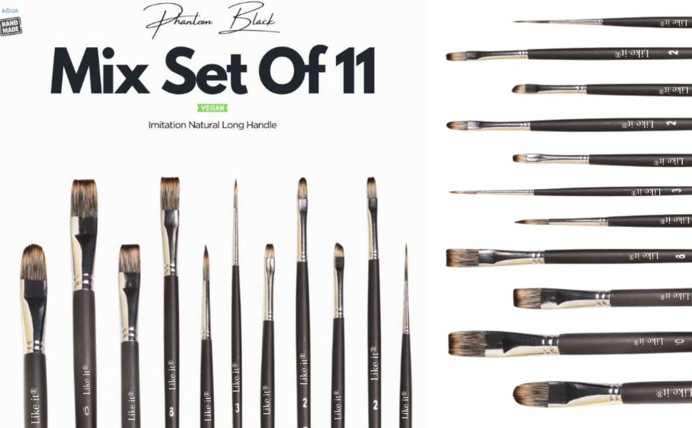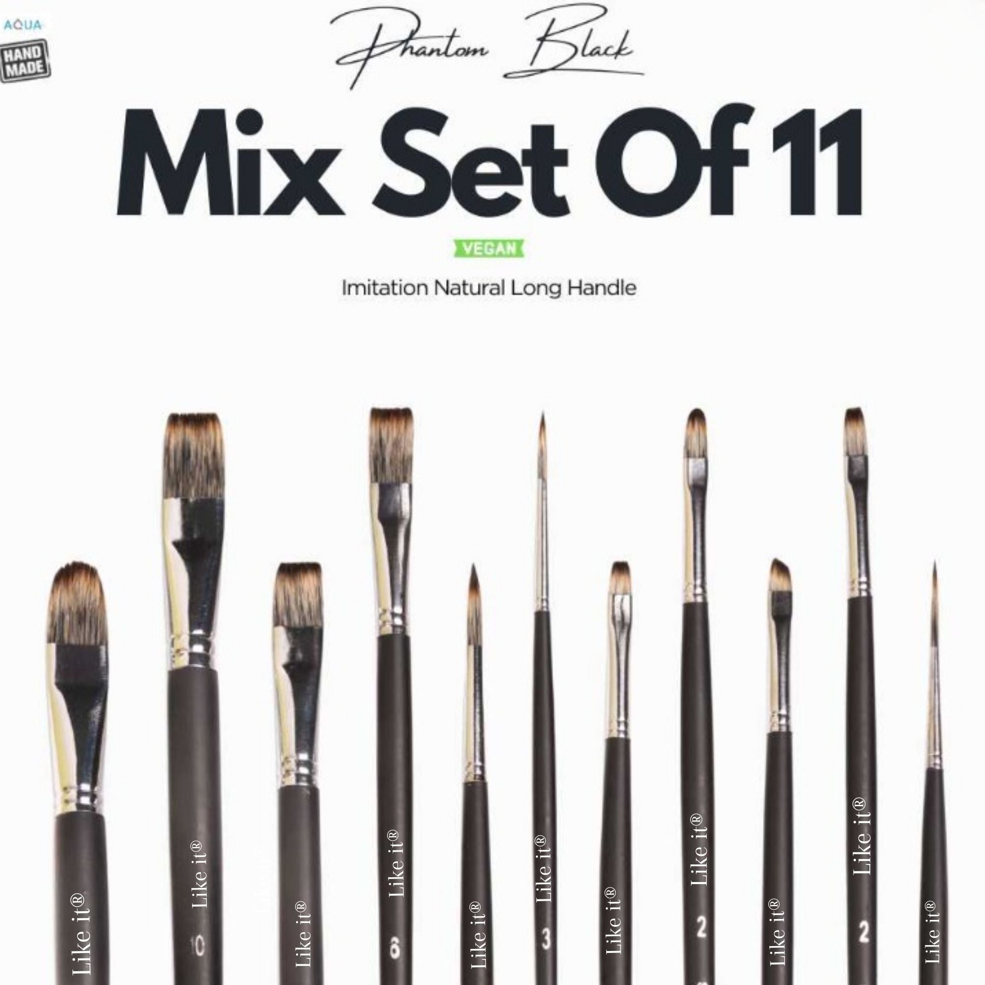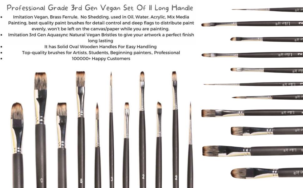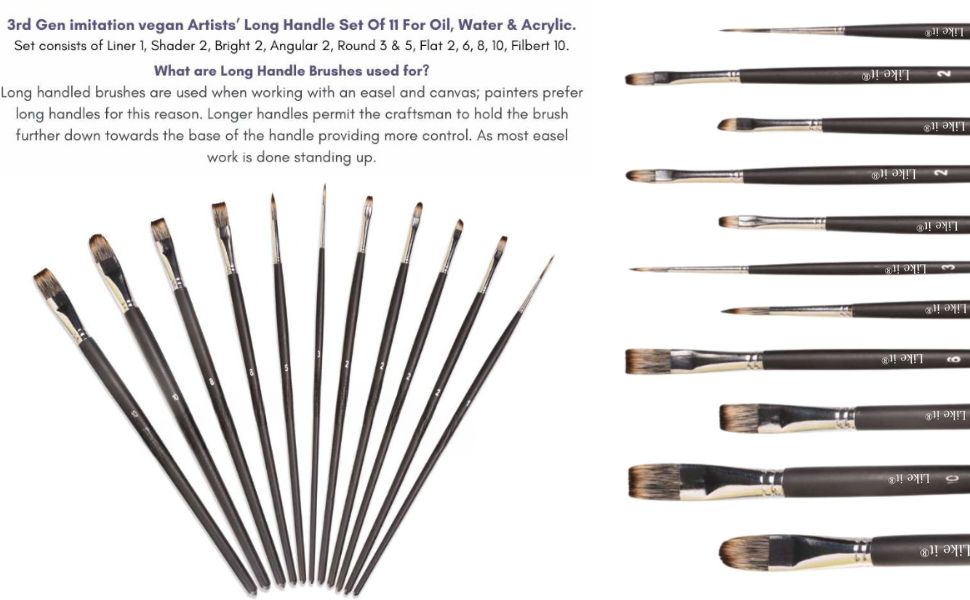 Introducing Like it Mix Set Of 11 Long Handle (3rd Gen Aquasync Imitation Vegan Bristle) Artists’ Long Handle Set Of 11 For Oil, Water & Acrylic