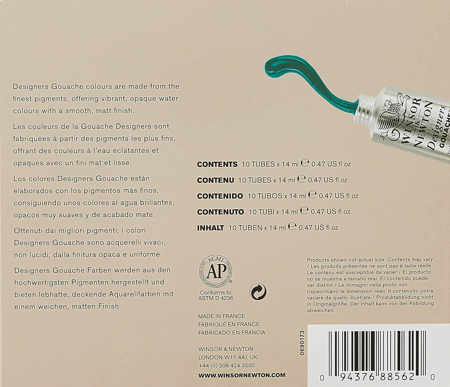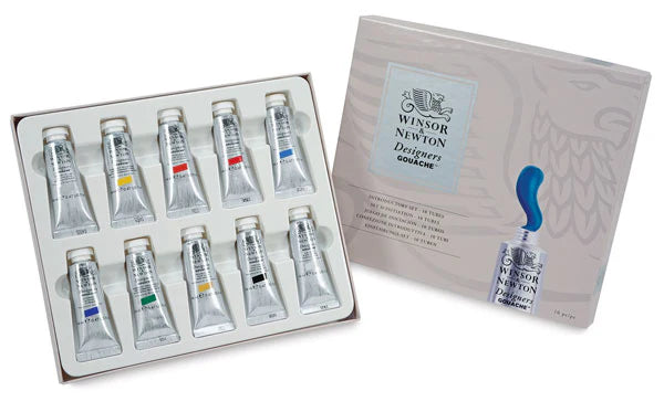 An ideal starter set with a selection of 10 x 14ml tubes. Includes: Primary Yellow, Permanent Yellow Deep, Spectrum Red, Primary Red, Ultramarine, Primary Blue, Permanent Green Middle, Yellow Ochre, Ivory Black, Zinc White. Actual contents may vary.